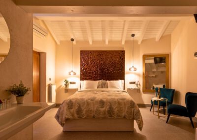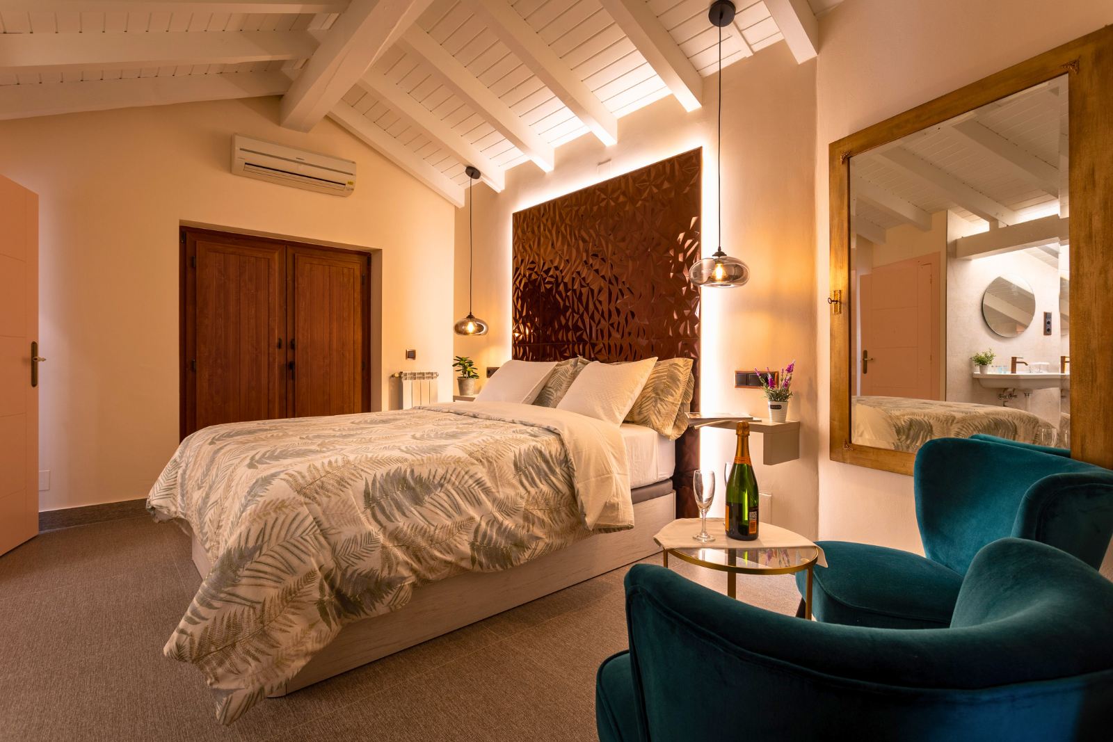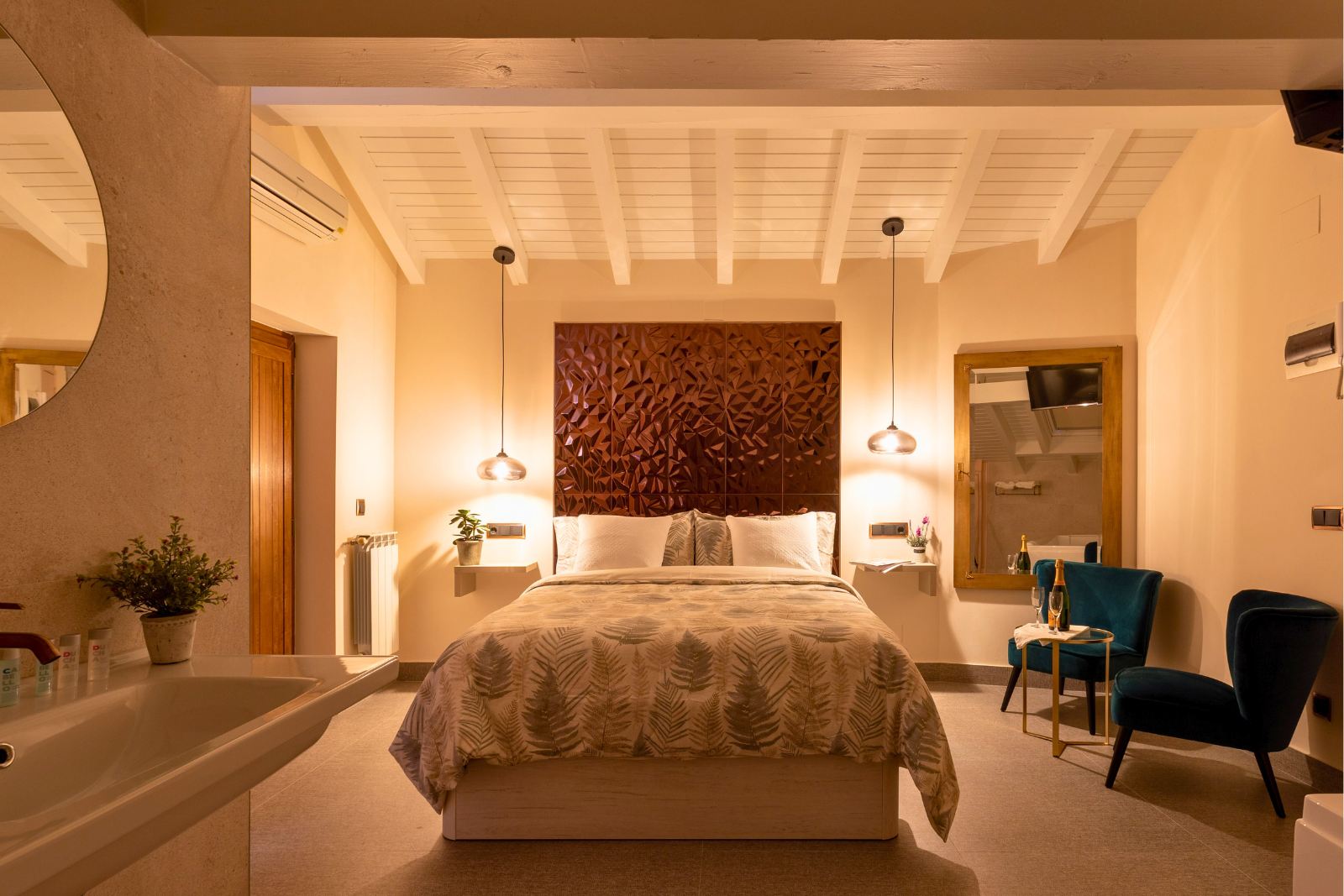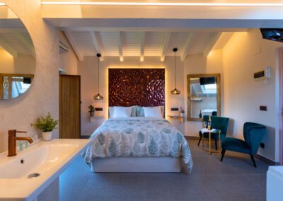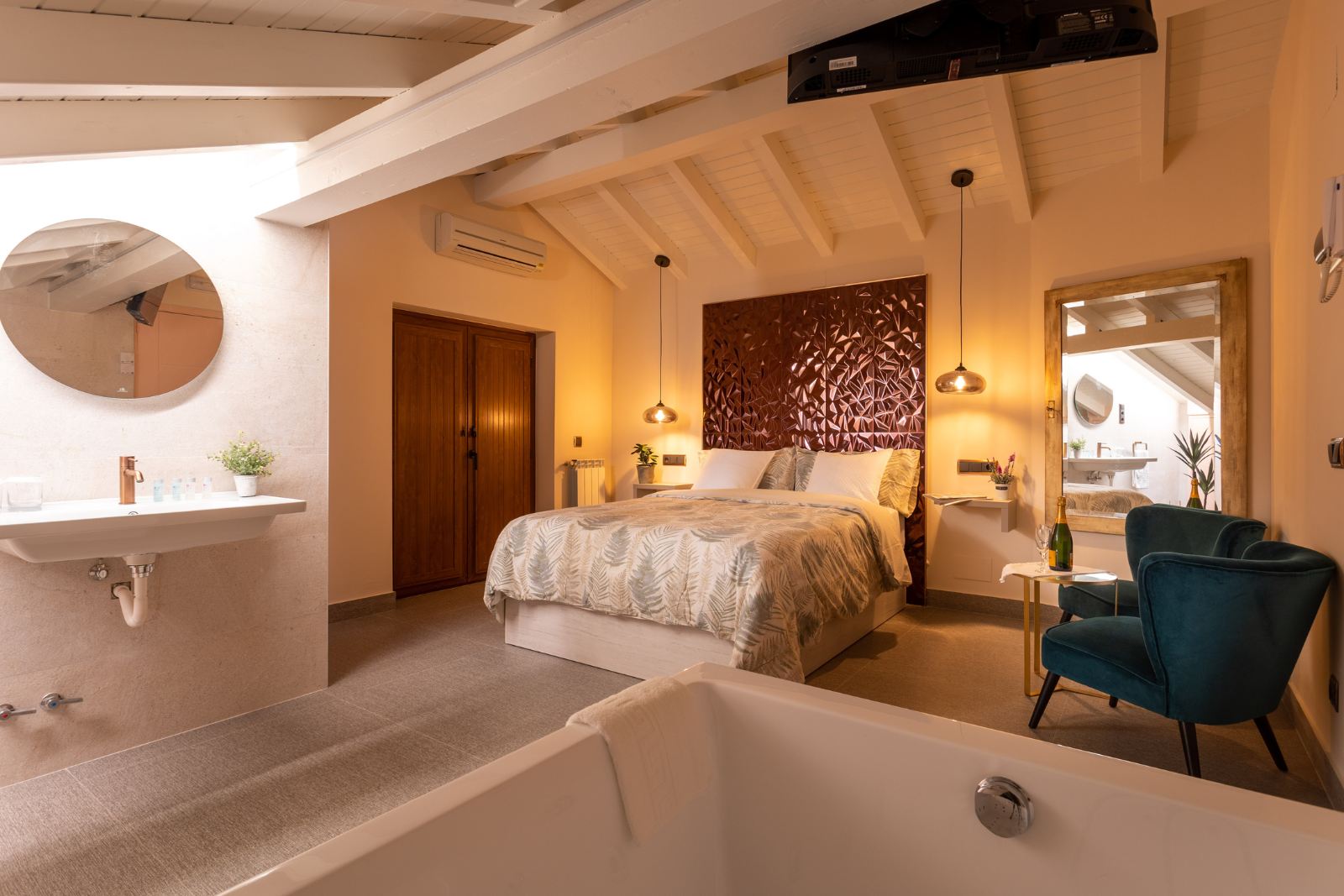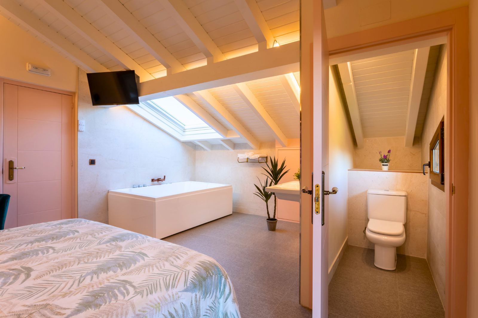 Nuestra fantástica suite El Dosel ofrece una amplia suite con baño con bañera hidromasaje semicircular, y unas hermosas vistas a los paisajes exteriores.