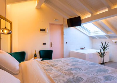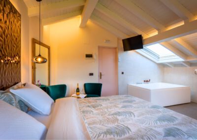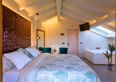 Esta hermosa Suite de Lujo constituye el refugio perfecto para los enamorados durante su visita a Cantabria. La Suite de Lujo está bañada en luz natural. Disfrute de música relajante desde el jacuzzi o de una botella de champagne en la barra americana.